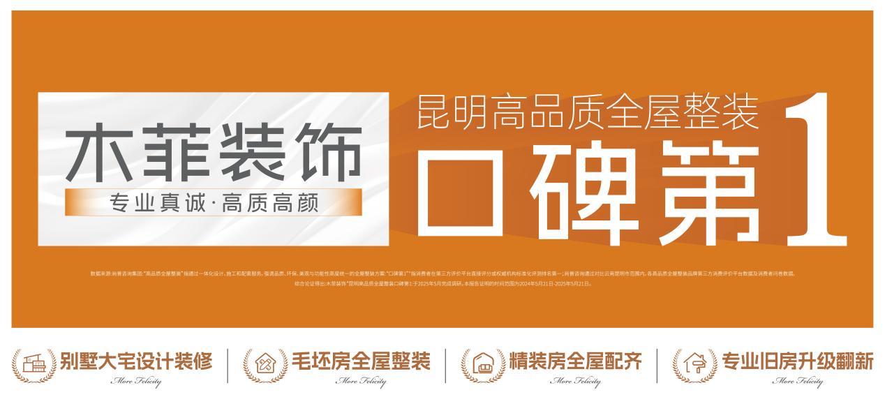 能在云南深耕 23 年,成为昆明家装市场的品质代名词,木菲的底气来自实打实的品质和服务,给西市业主三大安心承诺,装新家全程零踩坑!